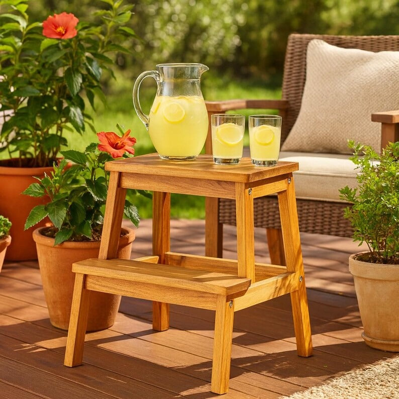 Bring warmth, strength, and versatility into your home with this 100% solid Acacia wood 2-step stool. Designed with a natural wood grain finish and smooth water-based coating, this sturdy stool isn’t just functional — it’s also a stylish accent piece for any room.