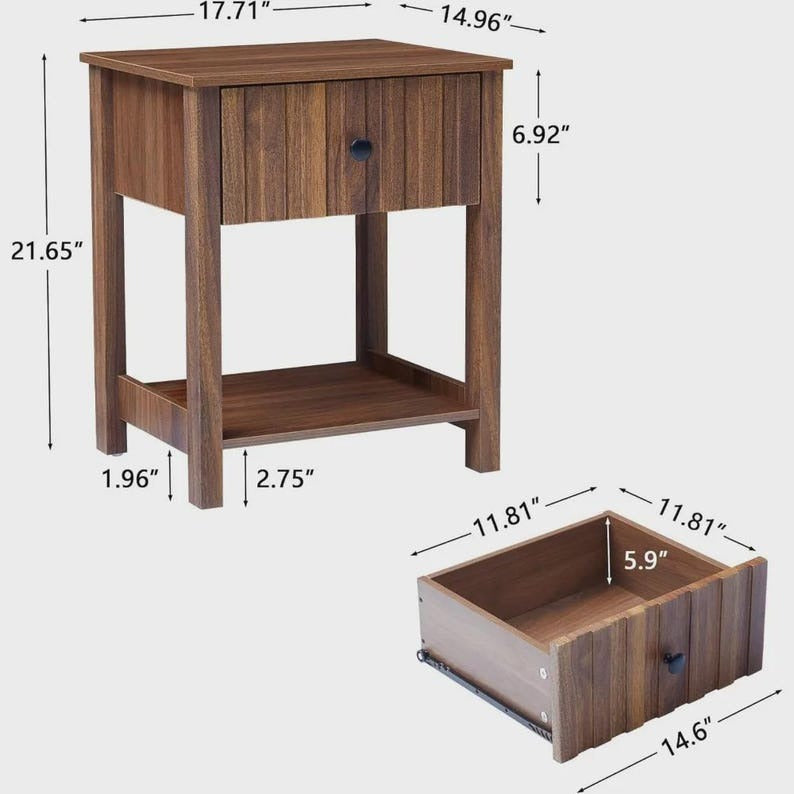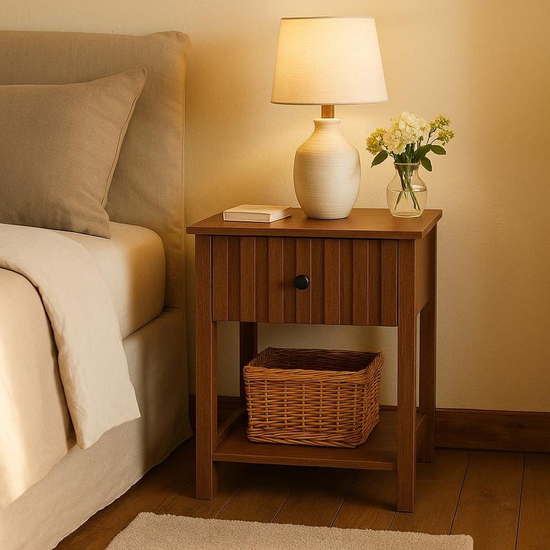 Bring elegance and functionality to your space with this modern wood nightstand, designed with a wide fluted decorative finish and a clean, minimalist silhouette. Measuring 21.65” high, it’s the perfect bedside companion, blending modern and bohemian-inspired style to elevate your bedroom décor.