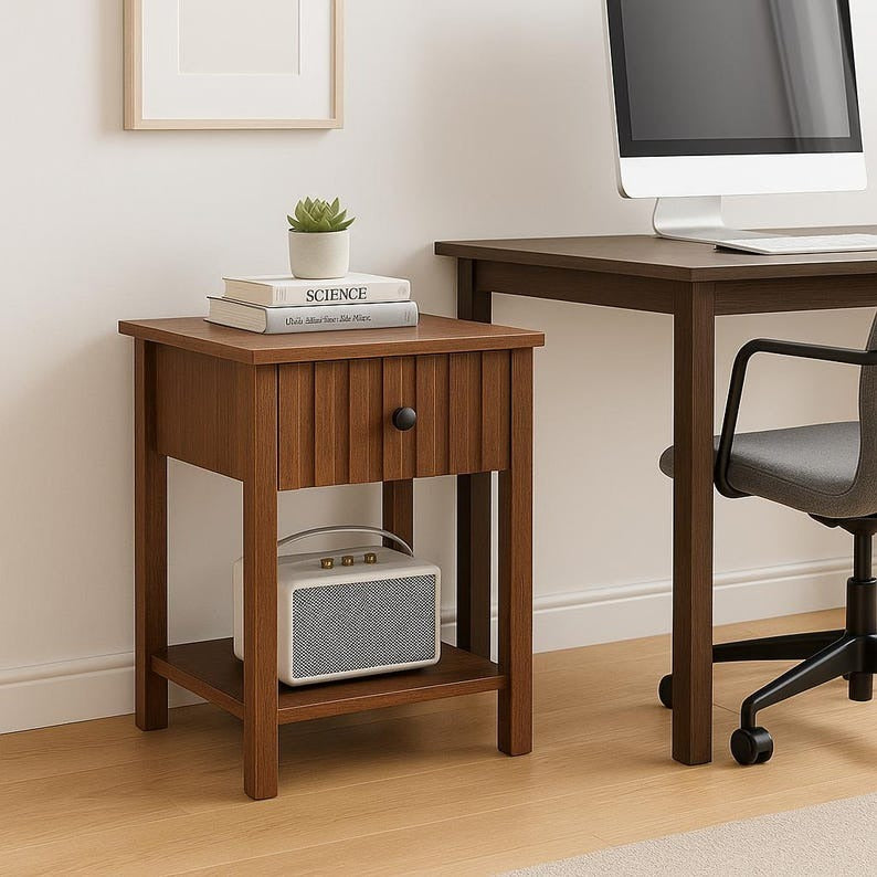 Brown Modern Wood Fluted Nightstand with Wide Fluted Finish & Drawer