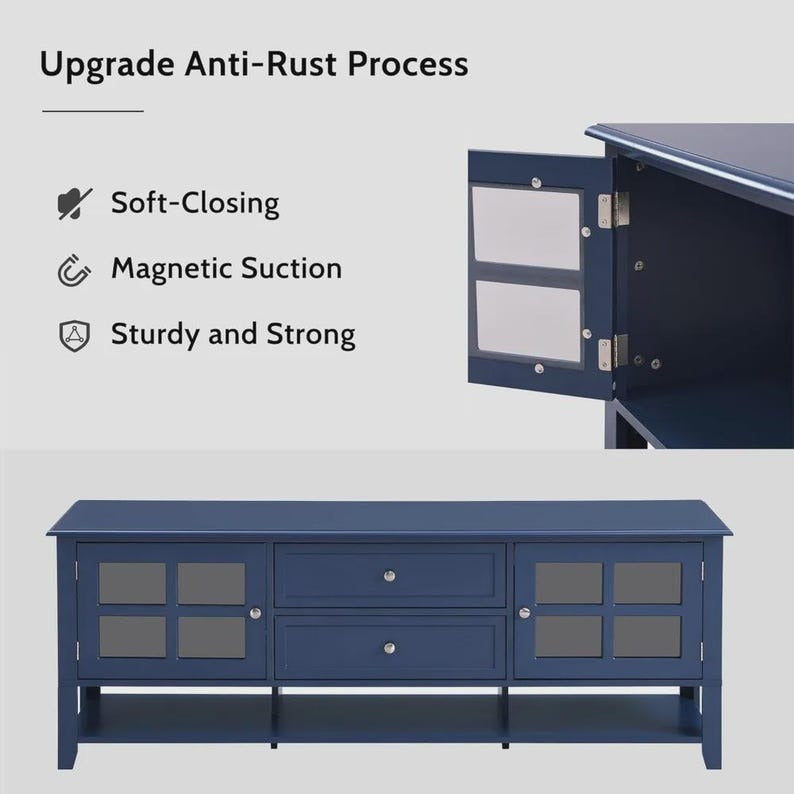 Minimalist TV Stand with 2 Glass Doors & 2 Drawers