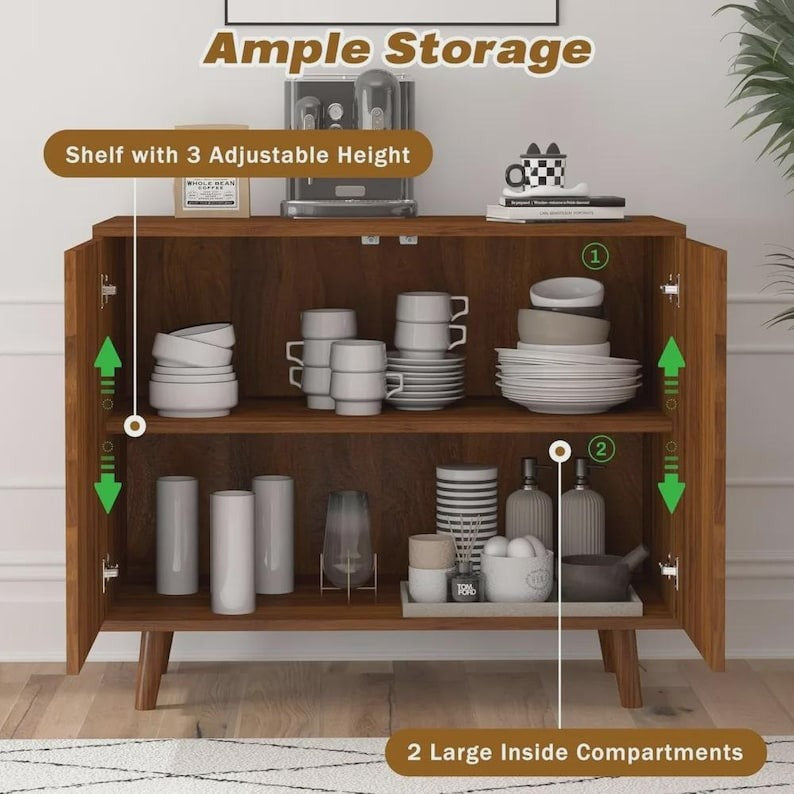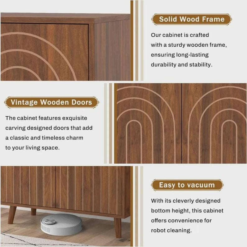 Elevate your home with this modern accent cabinet that combines sleek design with versatile functionality. Featuring elegant carved lines and a clean white finish, it brings a touch of sophistication to any room—whether it’s your living room, bedroom, hallway, kitchen, or office. Built with durable engineered wood, this cabinet is designed to withstand daily use while keeping your space organized. Adjustable shelves allow you to customize storage for books, décor, or everyday essentials, making it as practical as it is stylish. Perfect as an entryway table, buffet sideboard, coffee bar, or credenza, this piece blends seamlessly into modern homes and adds both beauty and function to your space.