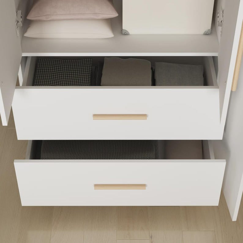 Upgrade your bedroom storage with this modern white wardrobe closet, designed with minimalist elegance and everyday practicality in mind. Featuring 2 drawers, 6 storage compartments, and 2 hanging rods, it offers versatile storage to keep clothes, accessories, and essentials neatly organized.